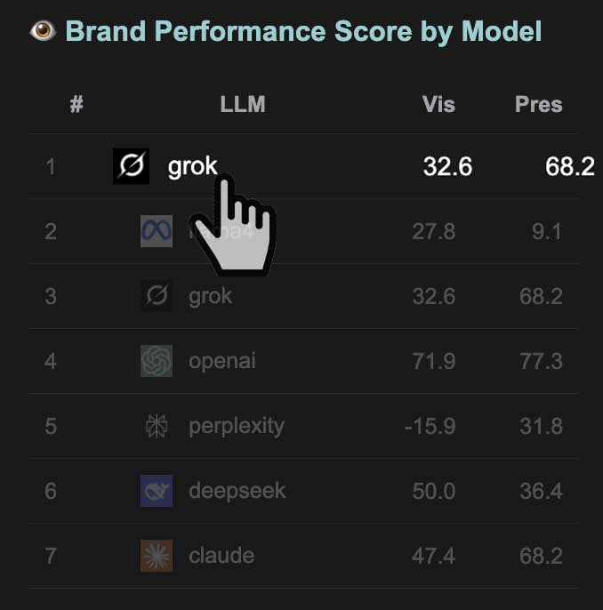 Grok responds with speed, wit, and real-world awareness. Seshes helps your brand show up clearly in one of the fastest-evolving LLMs out there. Built by xAI and integrated into X (formerly Twitter), Grok blends live context with conversational AI.