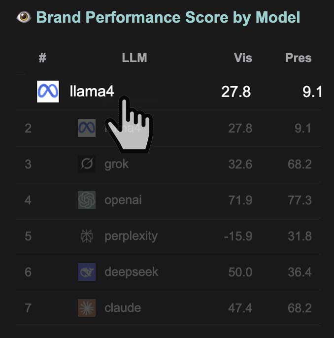 Meta’s Llama models are open-weight and fast-evolving. Seshes gives you a foothold in this diverse AI landscape. Llama fuels dozens of apps and plugins—appearing here scales your brand across tools.