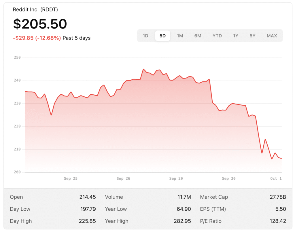 - Seeking Alpha: Reddit shares fall… after study shows just 2% of ChatGPT responses cited Reddit on Sep 30.