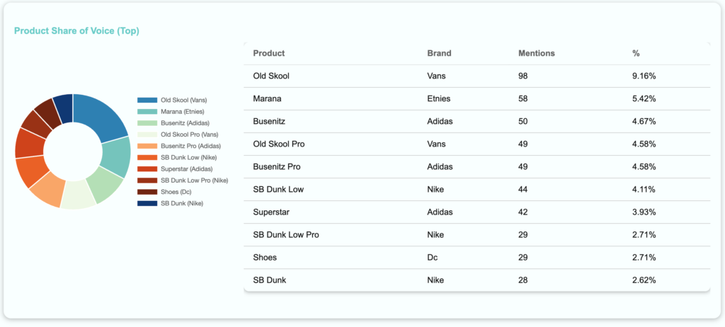 | Product | Brand | Mentions |